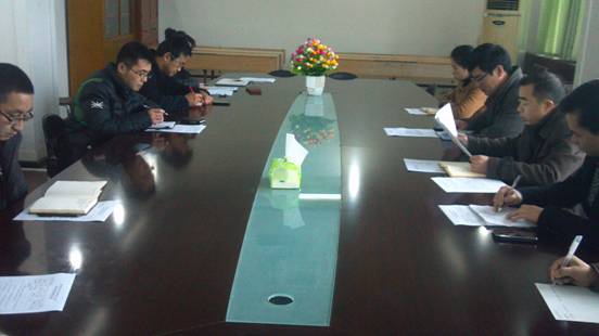 会议由党总支副书记王忠奎主持,参会人员有教务科、院办、实验室负责人、教研室主任、教工党支部书记。会上王书记对测绘工程教研室教学工作情况检查,实验室检查准备工作,2013年年度考核工作,论文检查,科研任务分配等做了安排,还强调了劳动纪律。
