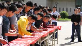 本网讯(张翊 供稿)2014年10月30日中午,采矿工程学院在逸夫广场举行诚“贷”之声 ,我心飞翔大型签名活动暨宣誓大会。党总支副书记王忠奎、副院长肖利平、辅导员张翊及集体同学参加了活动。