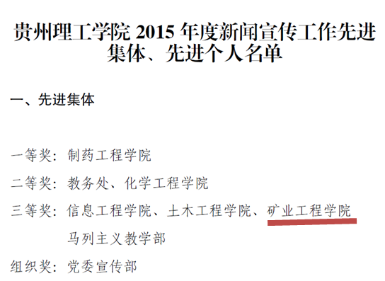 yabo鸭脖官网矿业工程学院荣获2015年度新闻宣传工作先进集体三等奖!