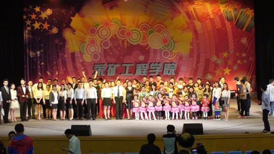 在采矿学院全体师生的共同努力下,“爱要大声说出来”晚会经过几个月的精心准备,给全校学子呈现了精彩的一幕。晚7时,晚会在暖场音乐下拉开了帷幕。首先,蔡家关幼儿园小朋友可爱的表演给观众带来了阵阵欢笑。紧接着,异域风情的肚皮舞表演让大家大开眼界。女同学们激情四射的爵士舞,也随着高昂的舞步,跳动的旋律,将全场的气氛变得热情似火,获得阵阵好评。一个关于《好学生和坏学生》的相声,逗乐了全场观众。最振奋人心的是互动主题活动“爱要大声说出来”,在场观众纷纷参与,有向妈妈表白的,有向好朋友表白的,其中一位女生大胆向心中男神表白的场景,让观众纷纷为她点赞!《中西乐器秀》展现了我院学生的艺术风采,表演集合了葫芦丝、箫、二胡、黑管、口琴、电吉他和B-BOX等乐器。社区阿姨为大家带来的苗族舞蹈,展现出了夕阳红的魅力。《前世今生》让大家体验了一个浪漫的魔术秀。话剧《爱丽丝漫游仙境》凭借精美的服装和精湛的演技,在舞台上还原了经典童话故事。一首《十年》勾起了大家曾经的回忆。晚会高潮时,采矿工程学院张开智副院长为全场观众寄语,崔波博士现场翻译成英文,引来大家阵阵掌声。张院长还和全体教师一起,为大家献上《我的中国心》,这首澎湃的爱国歌曲,给大家带来一股爱国的正能量。晚会在社区阿姨欢快的自由舞中结束。