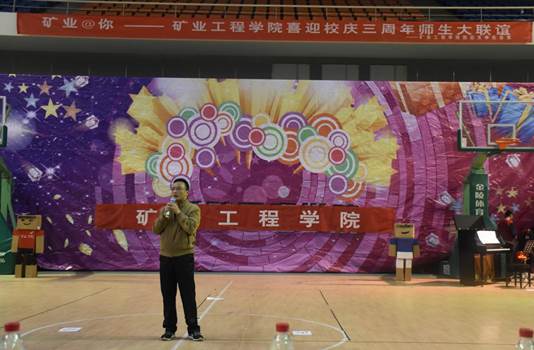 正值yabo鸭脖官网建校三周年之际,4月28日19时,由矿业工程学院主办,团总支、学生会承办的矿业工程学院喜迎校庆三周年——矿业@你师生大联欢活动在体育馆拉开帷幕。院党总支副书记詹凤合、副院长张开智以及学院500余名师生欢聚一堂,为学校送祝福。