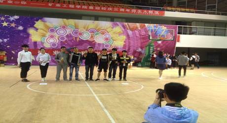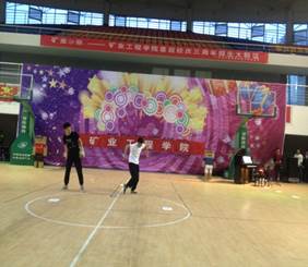 劲爆张扬的开场舞,直击心扉的师生演唱,别出新意的bangbang舞,风格迥异的舞蹈串烧,角逐激烈的“一站到底”抢答、幽默活泼的“快乐传递”、趣味和技能兼修的“我是乔丹”等团体活动,精彩纷呈。在一站到底、快乐传递、我是乔丹等团体活动中,老师们与同学们一起挥洒泪水,增进师生感情,增强团队精神和合作意识,气氛融洽、热烈。