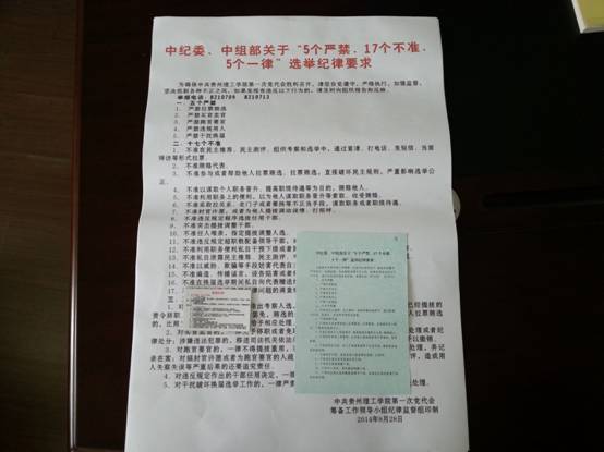 按照省纪委、省委组织部《关于在全省高校党委换届中严肃换届纪律保证换届风清气正的通知》(黔组通〔2014〕67号文件)以及学校党委的部署和要求,校党代会纪律监督组有条不紊开展各项工作,既保证换届纪律知晓度的提高,同时又营造了风清气正的换届氛围。