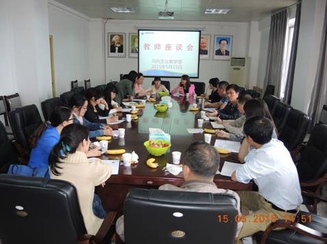 本网讯(蓝文思、张建军供稿)2015年5月15日下午,马列主义教学部为深入了解本部教师的教学效果,特邀请各招生学院参加教学反馈座谈会。马列部敖以深主任主持会议,采矿工程学院、制药工程学院、资源与环境工程学院、化学工程学院、机械工程学院、土木工程学院、电气工程学院及经济管理学院派遣教师参加了此次会议。