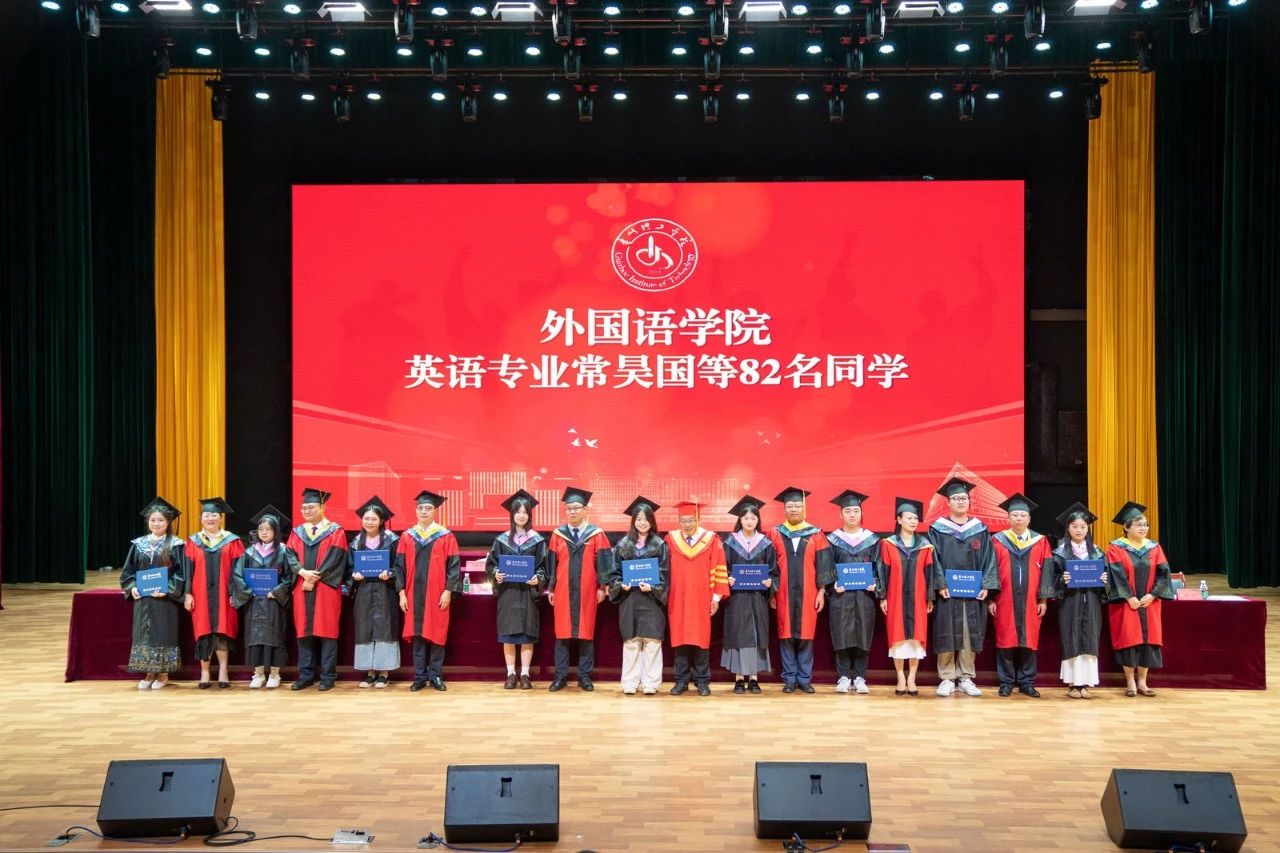 今日拨穗正冠,明日奋楫远航。6月28日上午10时,yabo鸭脖官网2024届毕业典礼暨学位授予仪式在蕴华楼大礼堂隆重举行。校领导潘良明、胡兴灿、高勇、贺梦依、张开智、李少波、杨鹏、安艳玲以及校学位评定委员会委员为毕业生代表一一拨穗颁证,各招生学院领导班子成员、教职工代表及家长代表莅临现场观礼,共同为2024届毕业生送上最真挚的祝福。