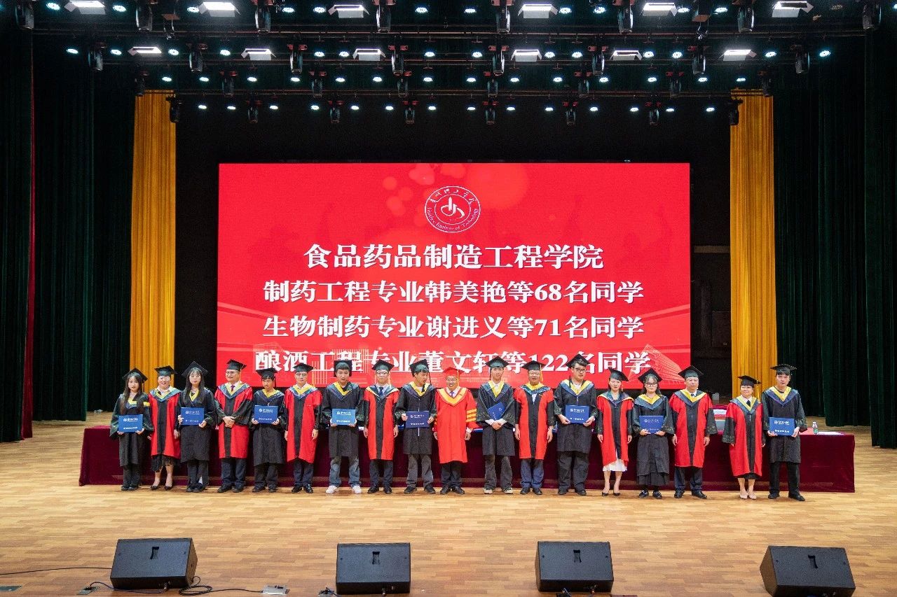 校领导、校党委委员为获得省级和校级优秀毕业生表彰的毕业生代表颁发证书。