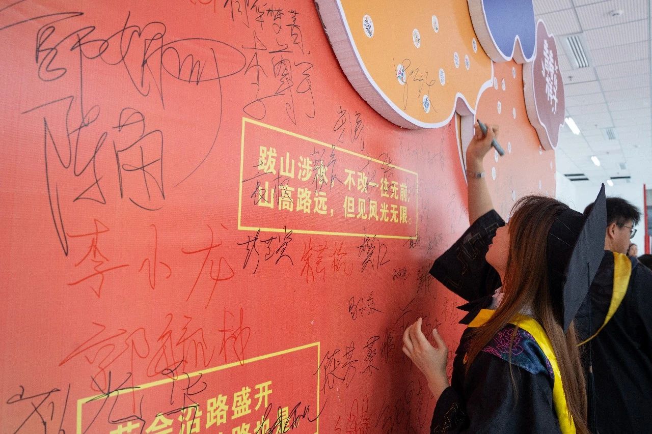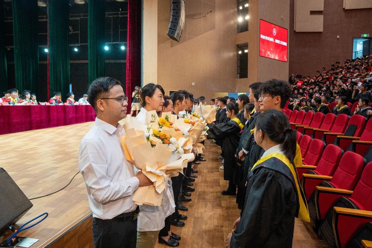 校党委副书记、院长潘良明寄语毕业生,希望他们胸怀家国,做伟大理想的追梦人;要勇于担当,做敢作敢为的新时代奋斗者;要锐意进取,做终身学习的有心人;要笃行不怠,做勇于吃苦的赶路人;要正直善良,做爱人爱己的暖心人。希望同学们无论将投身何种行业,都能坚持以奋斗之青春书写人生华章:都能向下扎根,到祖国最需要的地方去;都能向内砥砺,深耕行业发展底层技术;都能向上生长,立志成为行业顶尖人才;都能向好突破,努力引领社会发展潮流。
