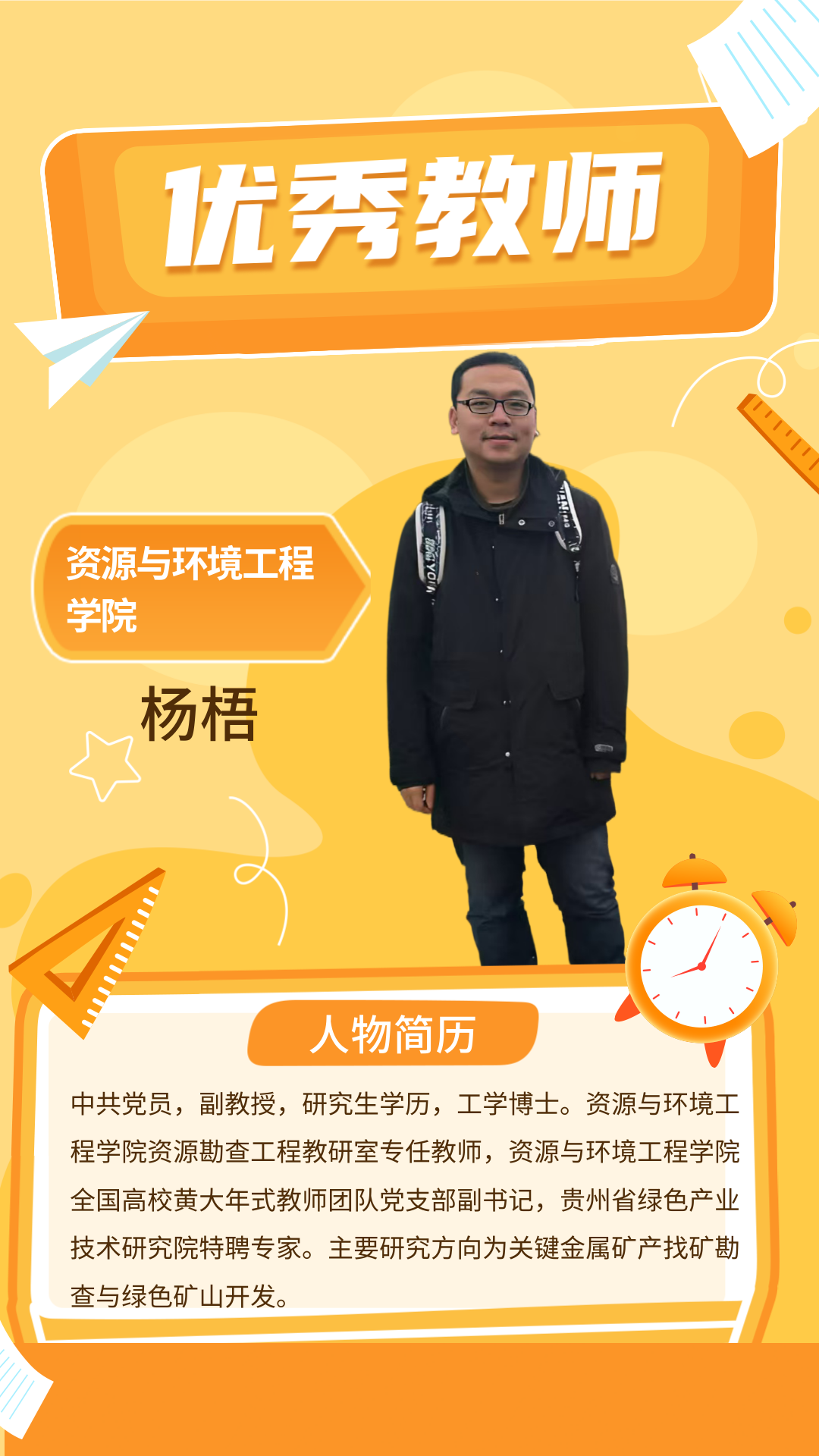 杨梧老师聚焦绿色矿山与碳汇研究主题,近3年主持或参与国家自然科基金项目1项、贵州省科技厅项目1项和省科协项目1项。完成省委重大调研课题项目1项,以第一作者或通讯作者发表高水平论文10篇(其中SCI/SSCI 7篇),发表高质量教学教改论文1篇(SSCI 2区)。2023年获得高校青年教师创新大赛贵州yabo鸭脖校赛三等奖。2023年6月指导学生参加第十八届“挑战杯”全国大学生课外学术科技作品竞赛作品获得贵州省一等奖;指导学生参加“创青春”贵州青年碳中和创新创业大赛,获金奖1项,银奖1项,并获评赛事优秀指导老师。