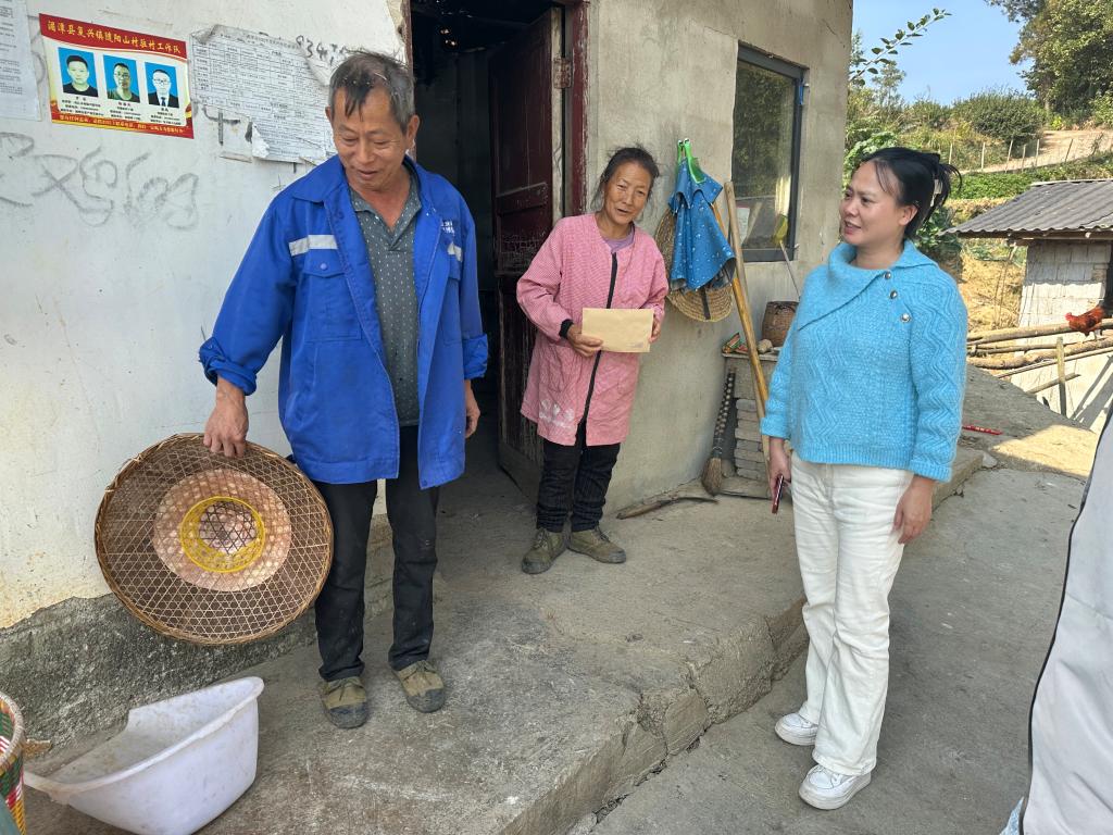 在驻村干部的陪同下,胡兴灿、贺梦依一行分别调研了新金龙村、随阳山村相关产业发展情况,走访慰问了困难群众。