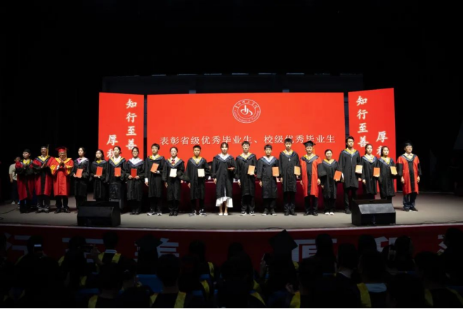 副校长胡兴灿宣读《yabo鸭脖官网关于表彰2023届优秀毕业生的决定》。