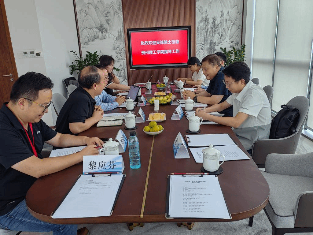 随行的北京yabo鸭脖大学材料学院副院长吴川介绍了北京yabo鸭脖大学材料学院概况和吴锋院士团队在新型二次电池与相关能源材料方面的研究成果及未来发展方向;材料与能源工程学院党总支书记潘健林介绍材料与能源工程学院概况,罗大军博士汇报贵州新能源动力电池及材料研发和生产情况。