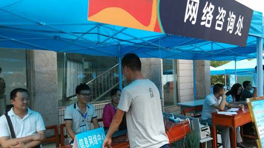 为了积极响应学校号召,迎接2014级新生入学报到,信息网络中心于9月3日就提前进行迎新现场光纤网络的布置工作,9月4日下午现场网络全部布置完成。9月5日是新生报到的第一天,为了让学生能够及时了解在校上网情况,我中心特别定制了《yabo鸭脖官网校园网学生用户使用指南》,并在迎新现场安排专人随时处理突发的网络故障,在迎新现场设立的网络咨询处,解答学生及家长关于校园网方面的疑问。